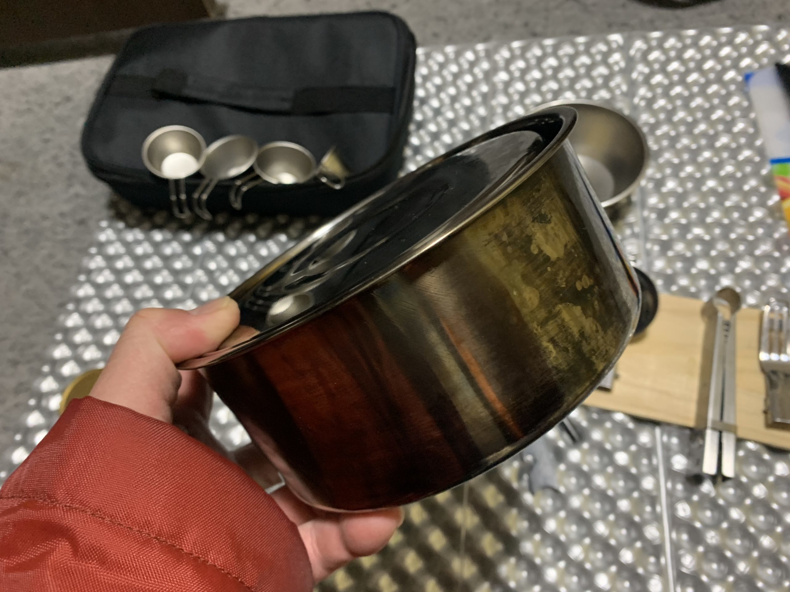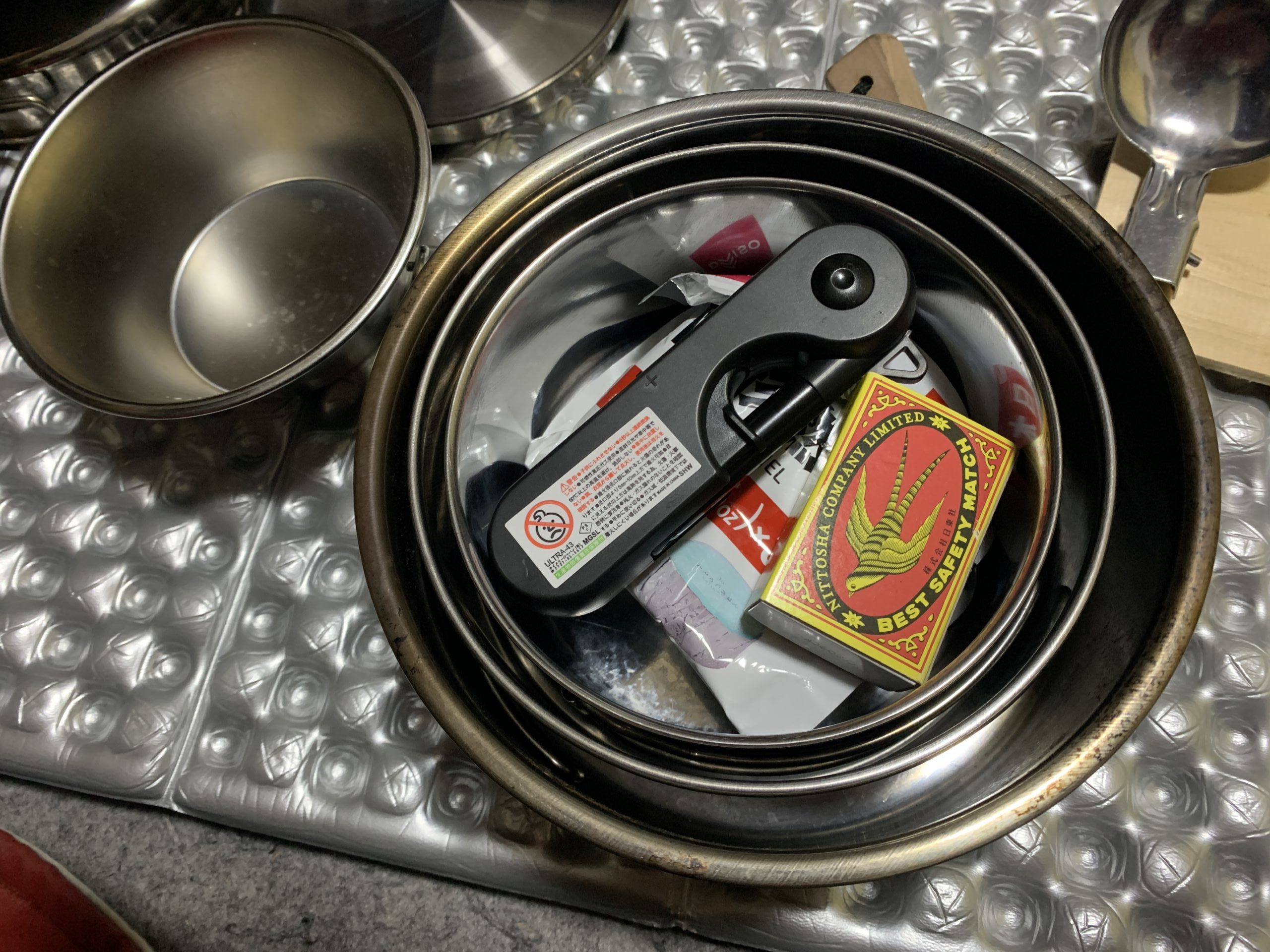 ちなみに、武田クッカーセットはキャンドゥで売っていた300円のステンレスクッカーにスタッキングしています。