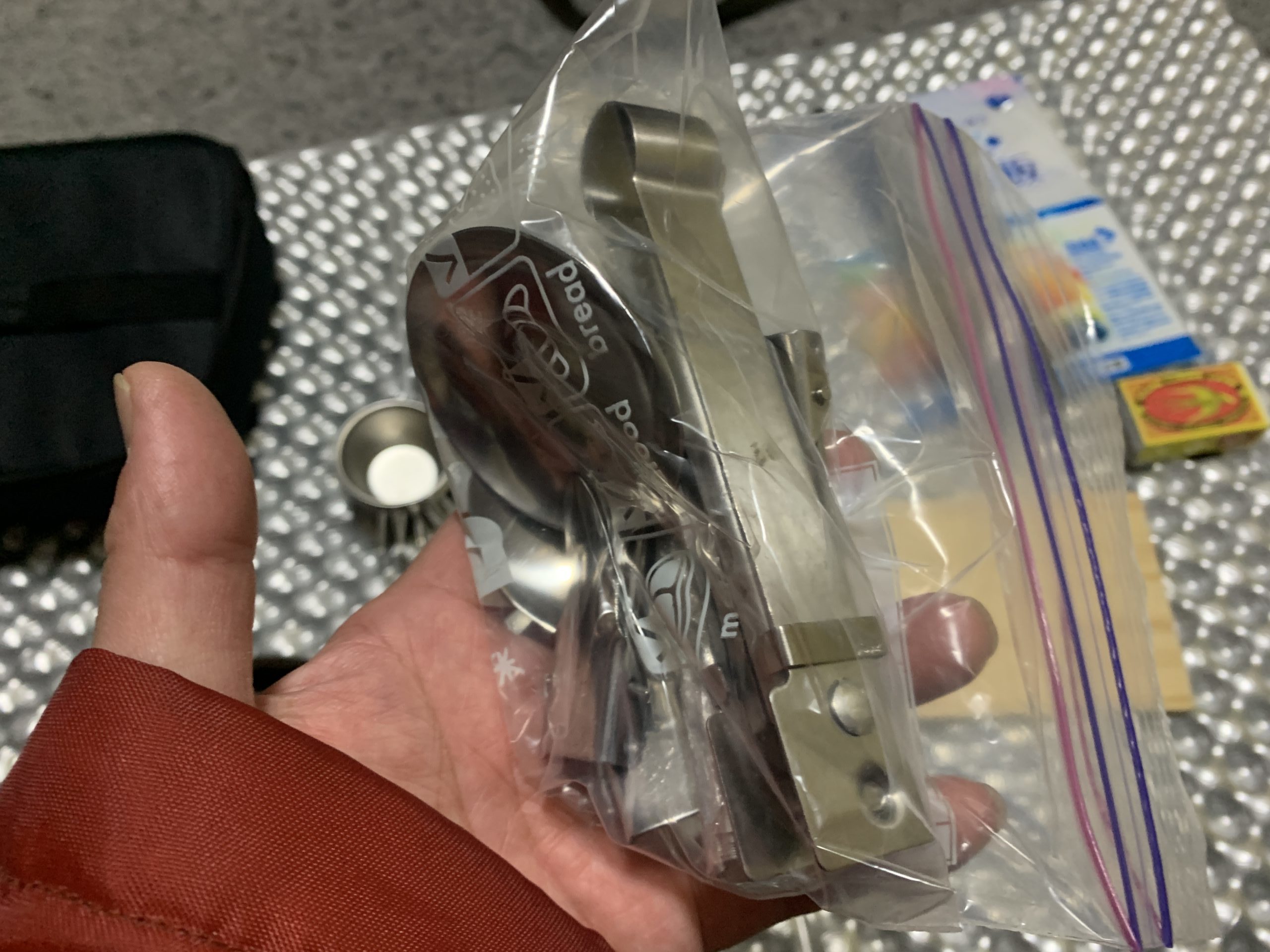 あとは、調理用のトングやオタマ、スプーン、フォーク、お箸をジップロックにまとめる。